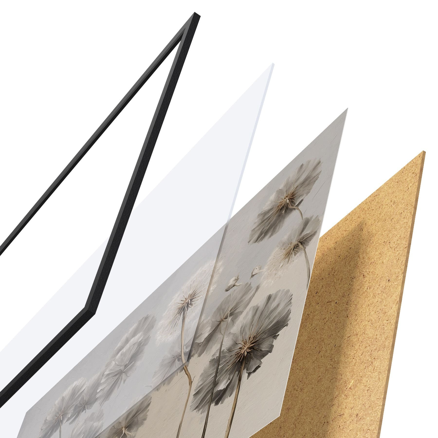 Plakāts sastāv no rāmja, pleksstikla, iespiestā attēla un skaidu plātnes pamatnes. Plakātu var uzreiz piekarināt pie sienas, pateicoties aizmugurē esošajiem stiprinājumiem.