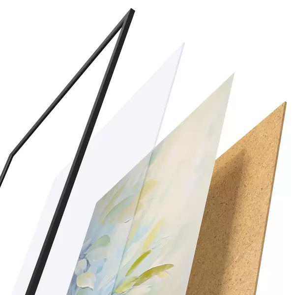 Plakāts sastāv no rāmja, pleksstikla, iespiestā attēla un skaidu plātnes pamatnes. Plakātu var uzreiz piekarināt pie sienas, pateicoties aizmugurē esošajiem stiprinājumiem.
