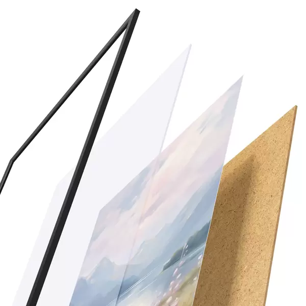 Plakāts sastāv no rāmja, pleksstikla, iespiestā attēla un skaidu plātnes pamatnes. Plakātu var uzreiz piekarināt pie sienas, pateicoties aizmugurē esošajiem stiprinājumiem.