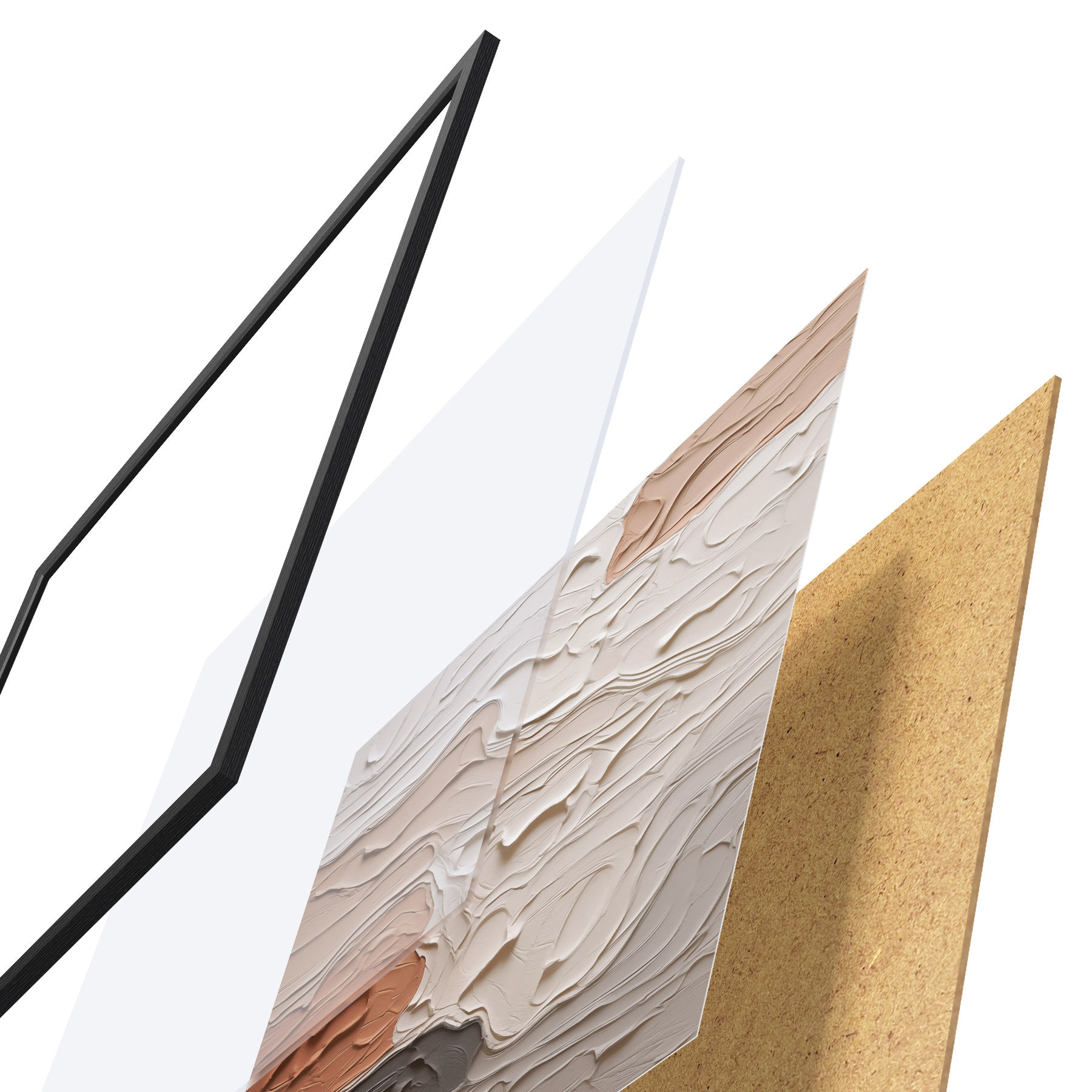 Plakāts sastāv no rāmja, pleksstikla, iespiestā attēla un skaidu plātnes pamatnes. Plakātu var uzreiz piekarināt pie sienas, pateicoties aizmugurē esošajiem stiprinājumiem.