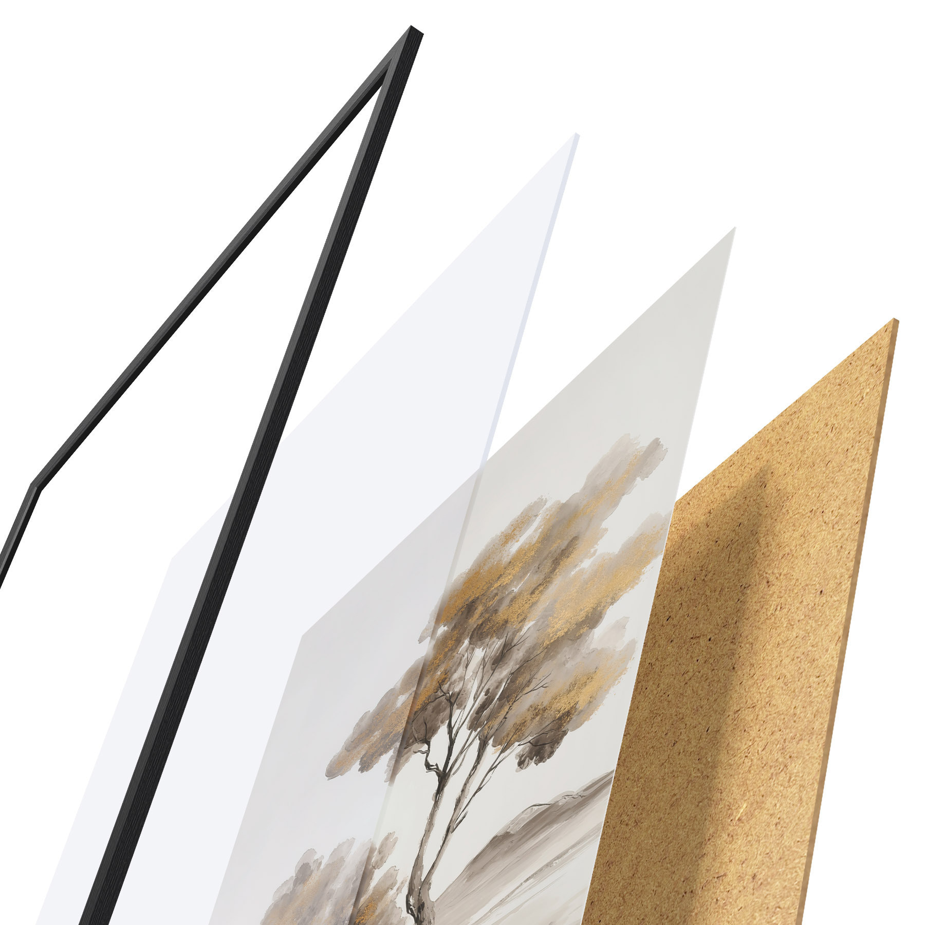 Plakāts sastāv no rāmja, pleksstikla, iespiestā attēla un skaidu plātnes pamatnes. Plakātu var uzreiz piekarināt pie sienas, pateicoties aizmugurē esošajiem stiprinājumiem.