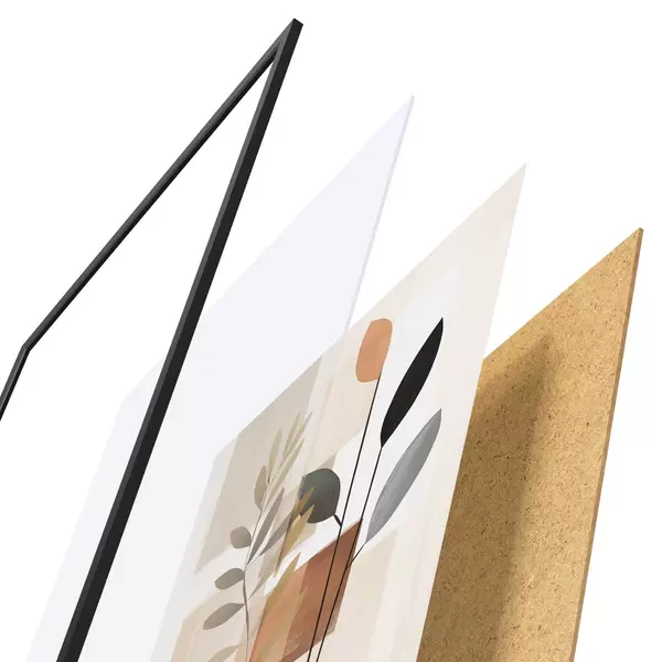 Plakāts sastāv no rāmja, pleksstikla, iespiestā attēla un skaidu plātnes pamatnes. Plakātu var uzreiz piekarināt pie sienas, pateicoties aizmugurē esošajiem stiprinājumiem.
