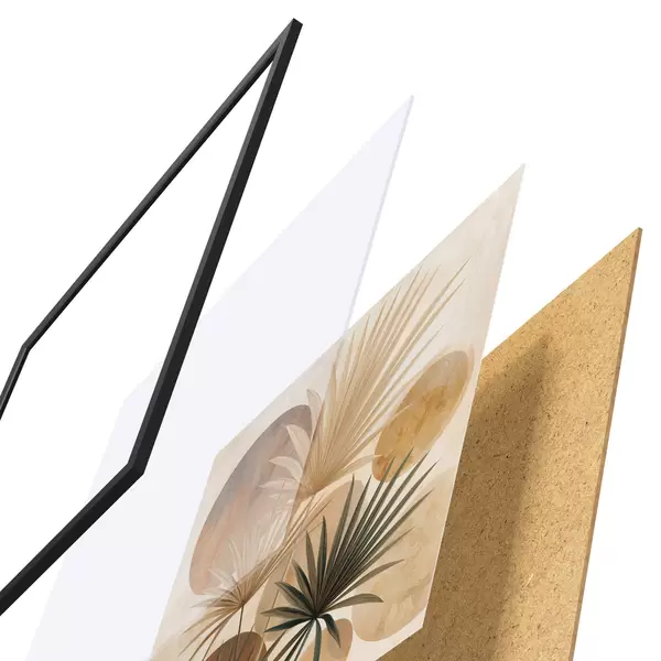 Plakāts sastāv no rāmja, pleksstikla, iespiestā attēla un skaidu plātnes pamatnes. Plakātu var uzreiz piekarināt pie sienas, pateicoties aizmugurē esošajiem stiprinājumiem.