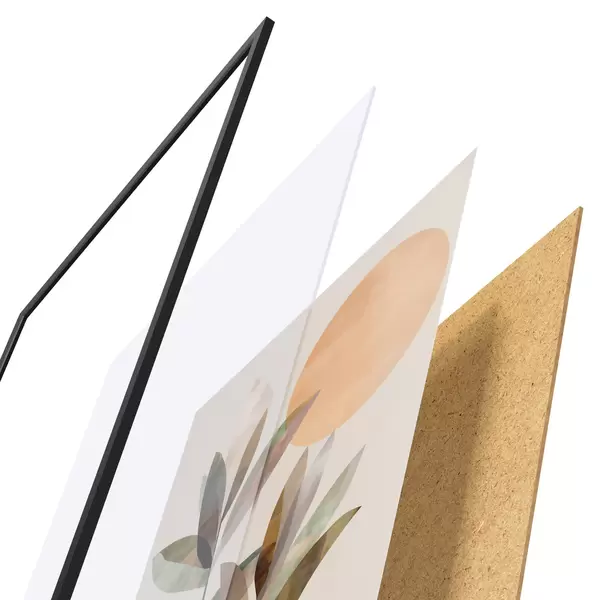 Plakāts sastāv no rāmja, pleksstikla, iespiestā attēla un skaidu plātnes pamatnes. Plakātu var uzreiz piekarināt pie sienas, pateicoties aizmugurē esošajiem stiprinājumiem.