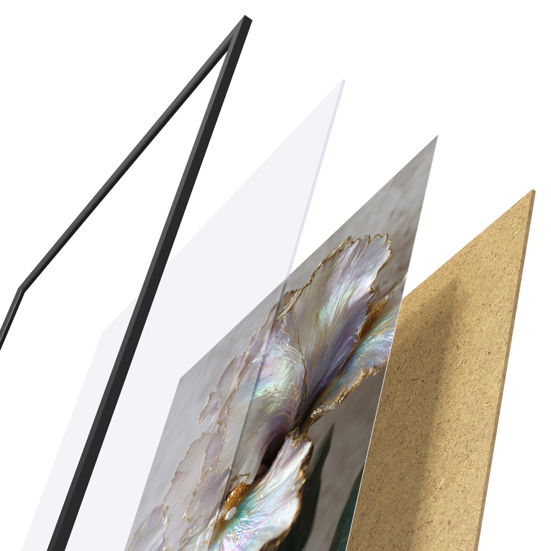 Plakāts sastāv no rāmja, pleksstikla, iespiestā attēla un skaidu plātnes pamatnes. Plakātu var uzreiz piekarināt pie sienas, pateicoties aizmugurē esošajiem stiprinājumiem.