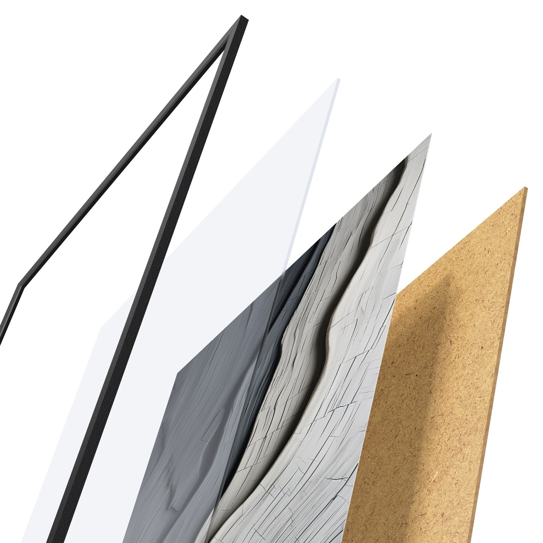 Plakāts sastāv no rāmja, pleksstikla, iespiestā attēla un skaidu plātnes pamatnes. Plakātu var uzreiz piekarināt pie sienas, pateicoties aizmugurē esošajiem stiprinājumiem.