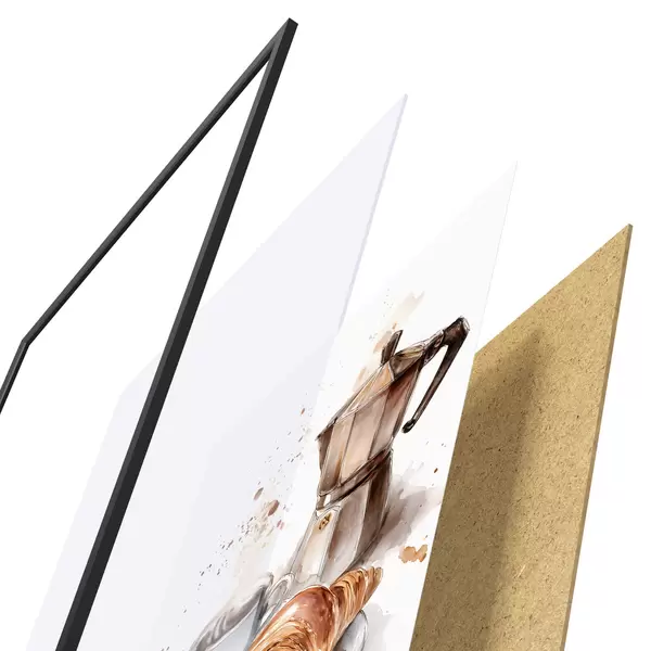 Plakāts sastāv no rāmja, pleksstikla, iespiestā attēla un skaidu plātnes pamatnes. Plakātu var uzreiz piekarināt pie sienas, pateicoties aizmugurē esošajiem stiprinājumiem.
