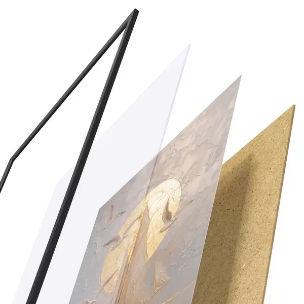 Plakāts sastāv no rāmja, pleksstikla, iespiestā attēla un skaidu plātnes pamatnes. Plakātu var uzreiz piekarināt pie sienas, pateicoties aizmugurē esošajiem stiprinājumiem.