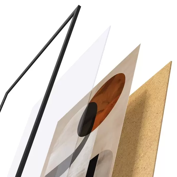 Plakāts sastāv no rāmja, pleksstikla, iespiestā attēla un skaidu plātnes pamatnes. Plakātu var uzreiz piekarināt pie sienas, pateicoties aizmugurē esošajiem stiprinājumiem.