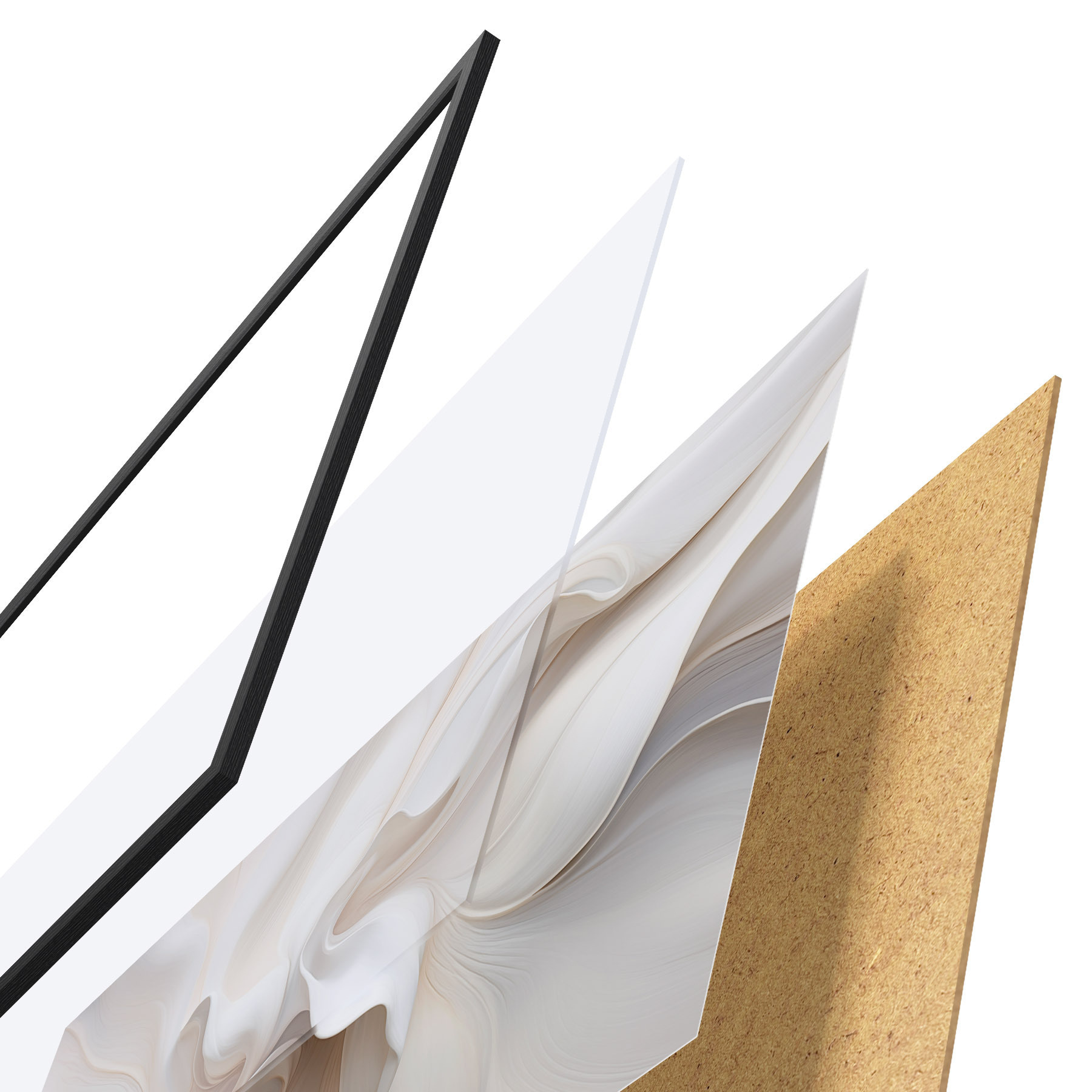 Plakāts sastāv no rāmja, pleksstikla, iespiestā attēla un skaidu plātnes pamatnes. Plakātu var uzreiz piekarināt pie sienas, pateicoties aizmugurē esošajiem stiprinājumiem.