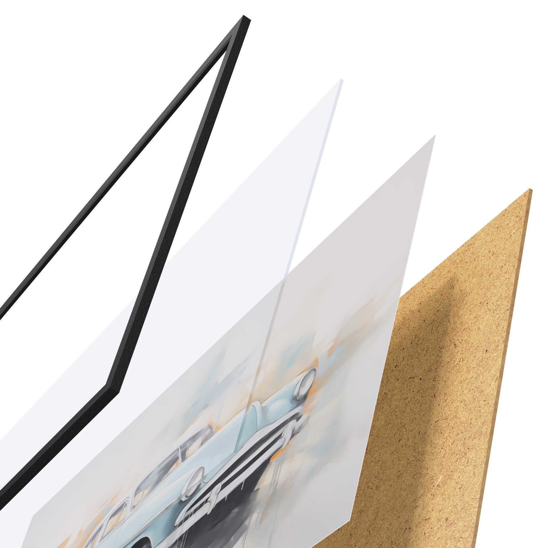 Plakāts sastāv no rāmja, pleksstikla, iespiestā attēla un skaidu plātnes pamatnes. Plakātu var uzreiz piekarināt pie sienas, pateicoties aizmugurē esošajiem stiprinājumiem.