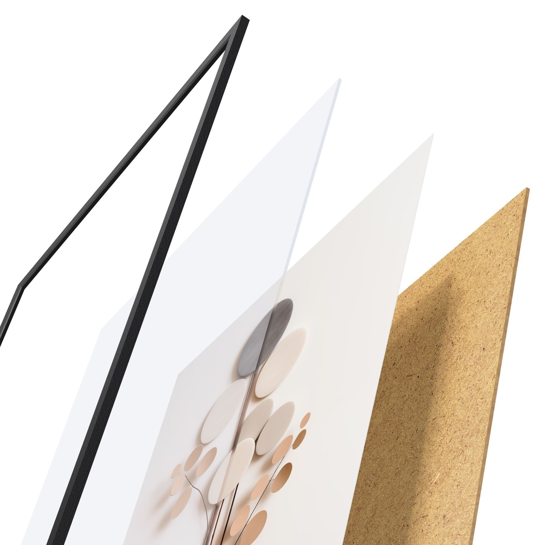 Plakāts sastāv no rāmja, pleksstikla, iespiestā attēla un skaidu plātnes pamatnes. Plakātu var uzreiz piekarināt pie sienas, pateicoties aizmugurē esošajiem stiprinājumiem.