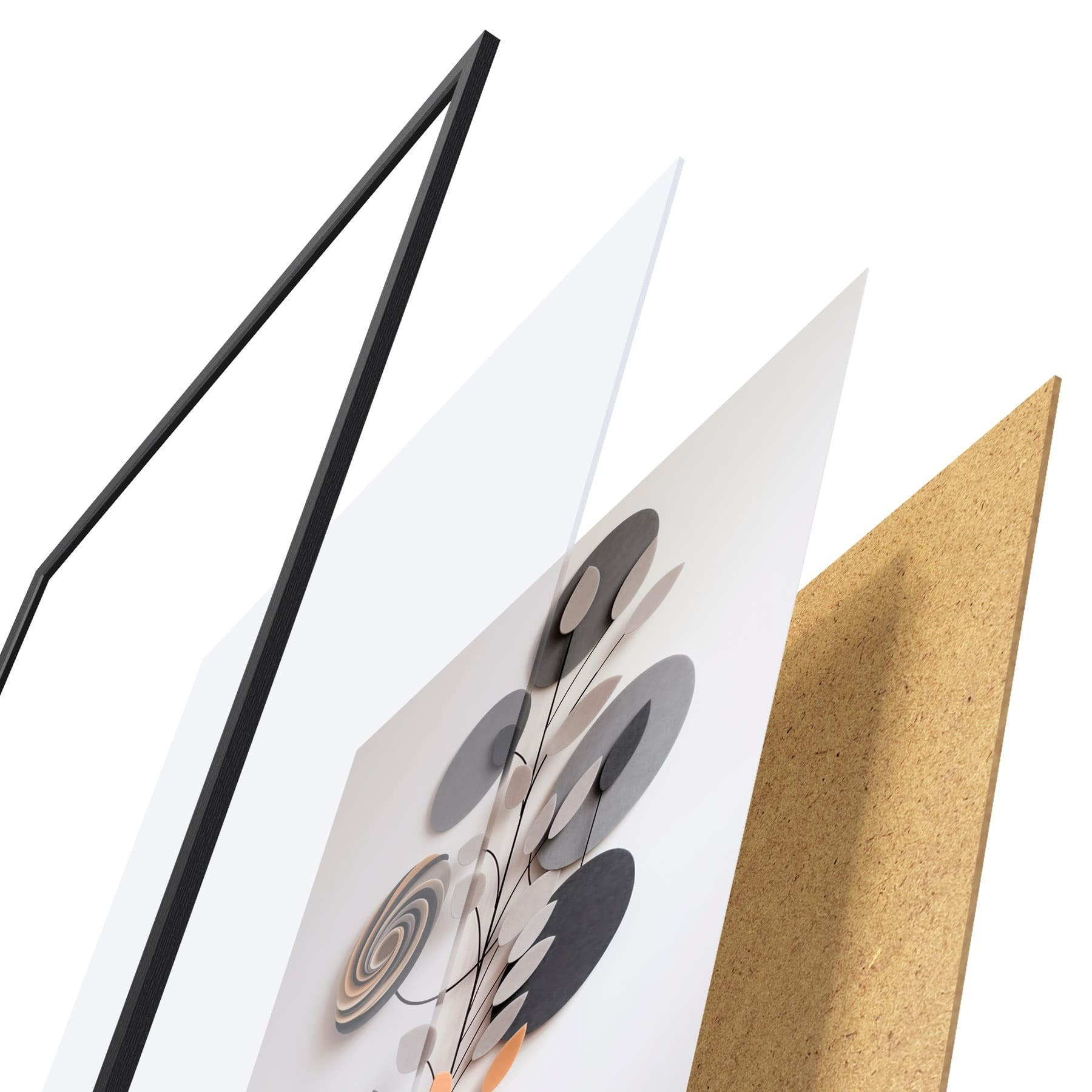 Plakāts sastāv no rāmja, pleksstikla, iespiestā attēla un skaidu plātnes pamatnes. Plakātu var uzreiz piekarināt pie sienas, pateicoties aizmugurē esošajiem stiprinājumiem.