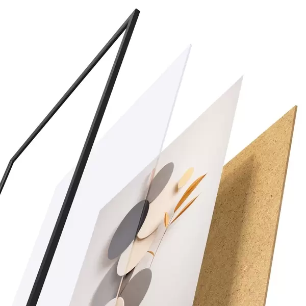 Plakāts sastāv no rāmja, pleksstikla, iespiestā attēla un skaidu plātnes pamatnes. Plakātu var uzreiz piekarināt pie sienas, pateicoties aizmugurē esošajiem stiprinājumiem.