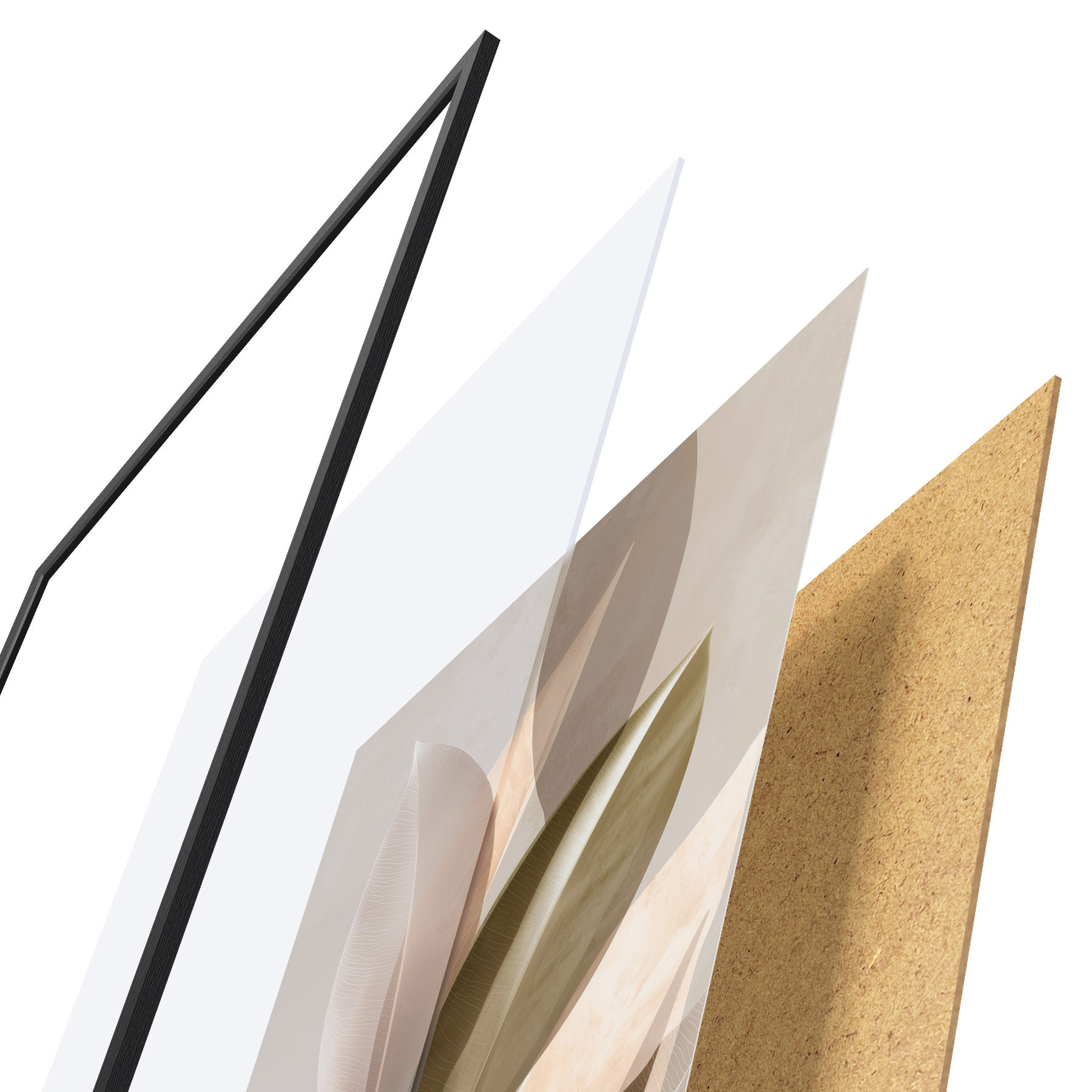 Plakāts sastāv no rāmja, pleksstikla, iespiestā attēla un skaidu plātnes pamatnes. Plakātu var uzreiz piekarināt pie sienas, pateicoties aizmugurē esošajiem stiprinājumiem.