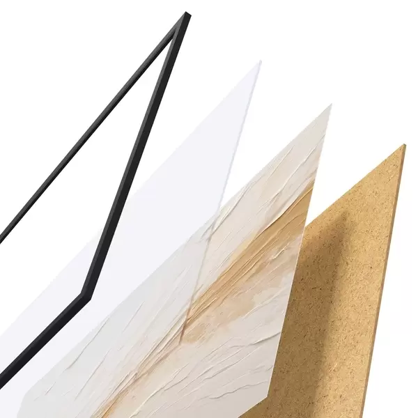 Plakāts sastāv no rāmja, pleksstikla, iespiestā attēla un skaidu plātnes pamatnes. Plakātu var uzreiz piekarināt pie sienas, pateicoties aizmugurē esošajiem stiprinājumiem.