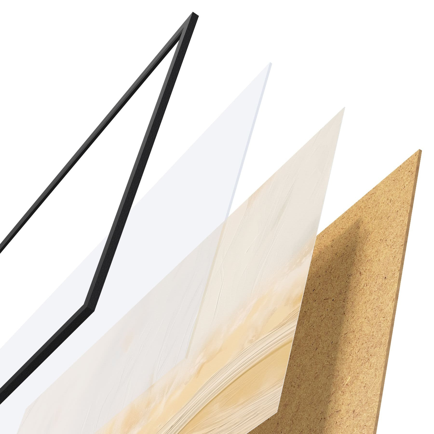 Plakāts sastāv no rāmja, pleksstikla, iespiestā attēla un skaidu plātnes pamatnes. Plakātu var uzreiz piekarināt pie sienas, pateicoties aizmugurē esošajiem stiprinājumiem.