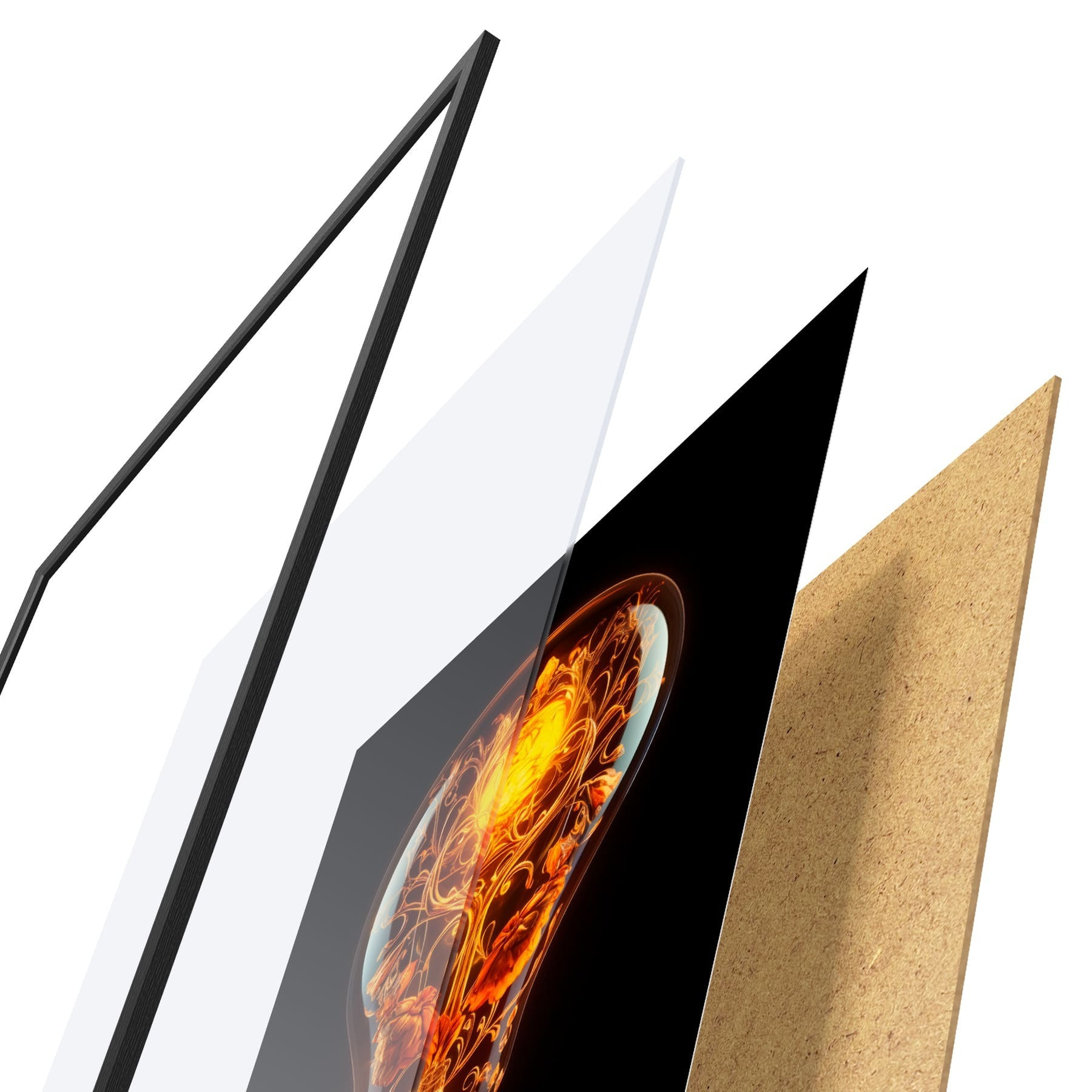Plakāts sastāv no rāmja, pleksstikla, iespiestā attēla un skaidu plātnes pamatnes. Plakātu var uzreiz piekarināt pie sienas, pateicoties aizmugurē esošajiem stiprinājumiem.