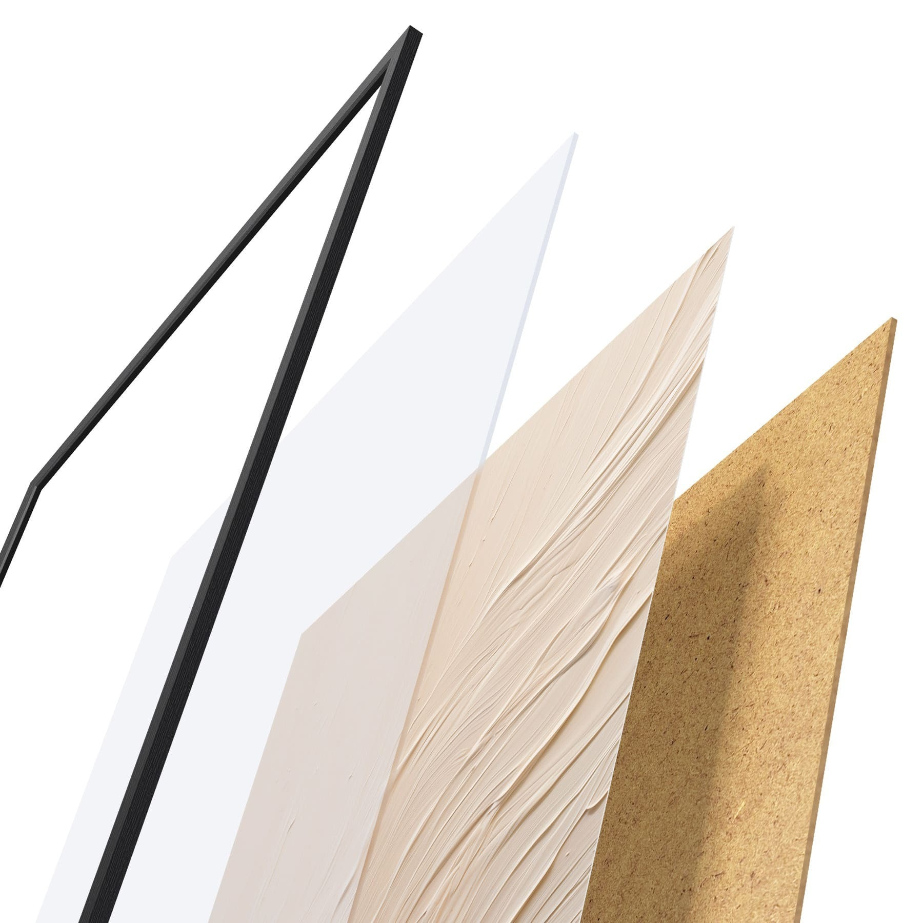 Plakāts sastāv no rāmja, pleksstikla, iespiestā attēla un skaidu plātnes pamatnes. Plakātu var uzreiz piekarināt pie sienas, pateicoties aizmugurē esošajiem stiprinājumiem.