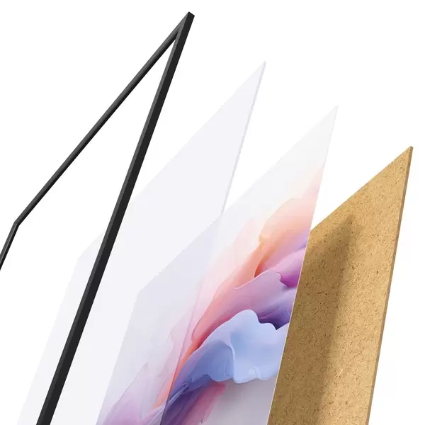 Plakāts sastāv no rāmja, pleksstikla, iespiestā attēla un skaidu plātnes pamatnes. Plakātu var uzreiz piekarināt pie sienas, pateicoties aizmugurē esošajiem stiprinājumiem.