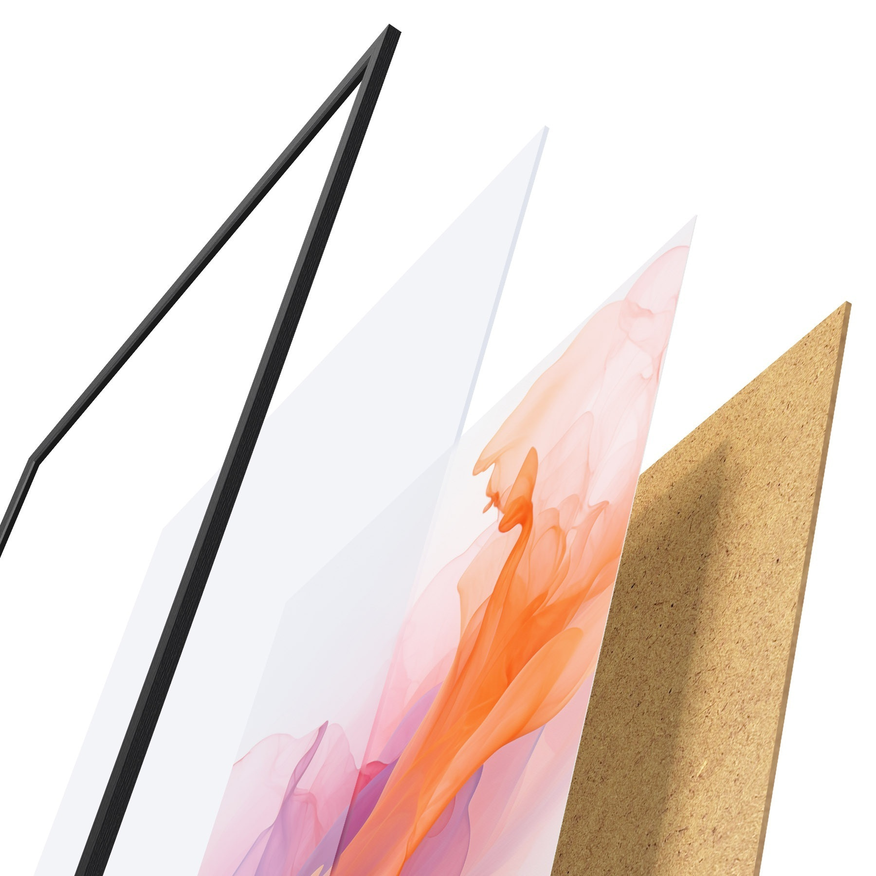 Plakāts sastāv no rāmja, pleksstikla, iespiestā attēla un skaidu plātnes pamatnes. Plakātu var uzreiz piekarināt pie sienas, pateicoties aizmugurē esošajiem stiprinājumiem.