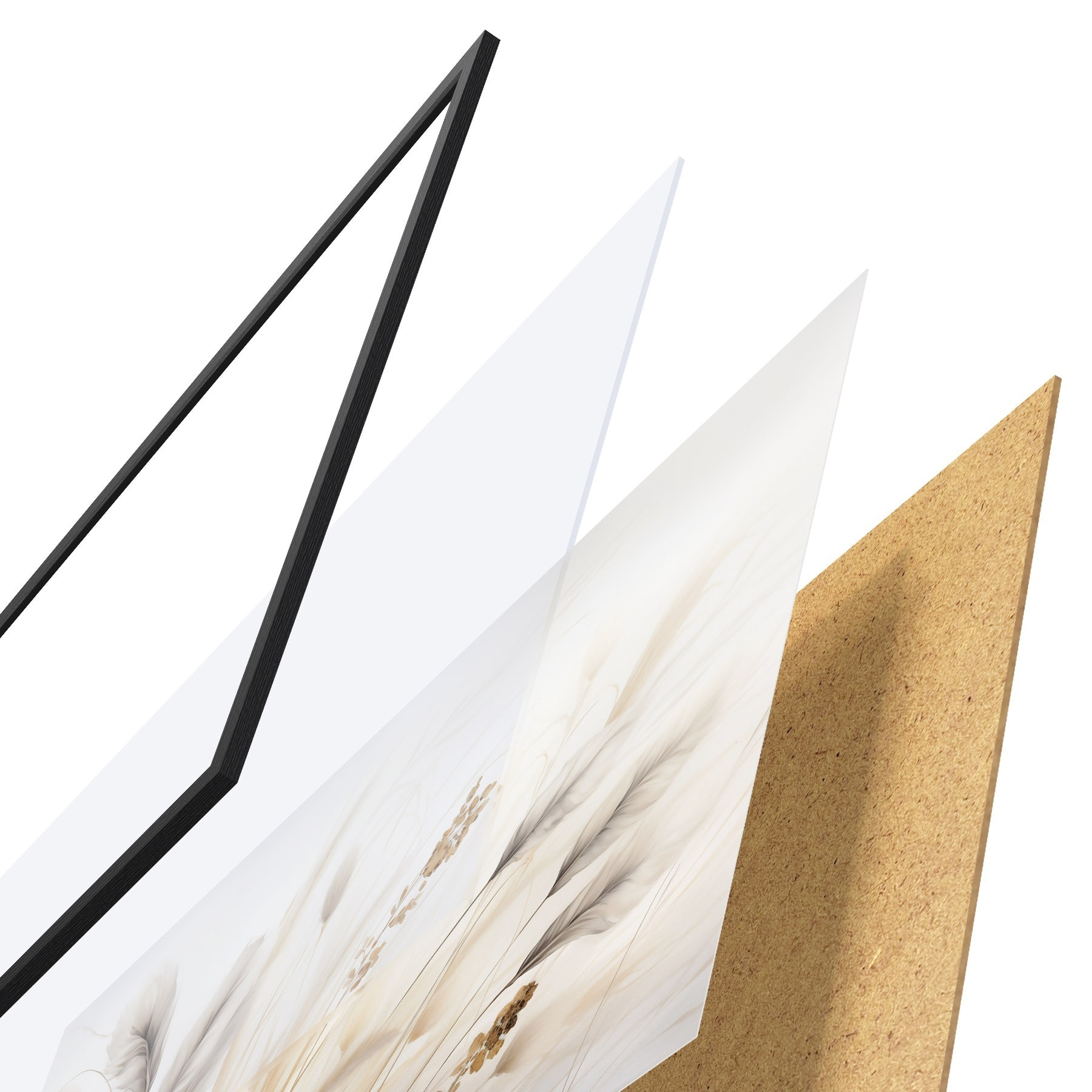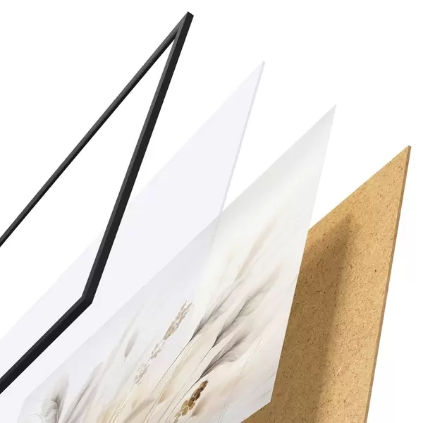 Plakāts sastāv no rāmja, pleksstikla, iespiestā attēla un skaidu plātnes pamatnes. Plakātu var uzreiz piekarināt pie sienas, pateicoties aizmugurē esošajiem stiprinājumiem.