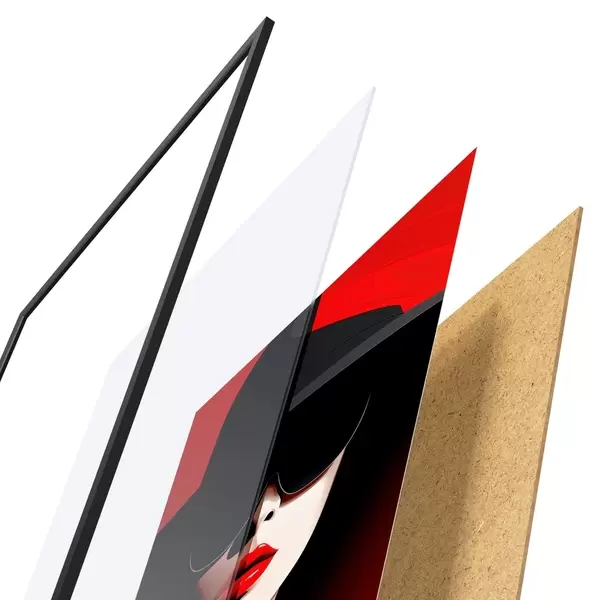 Plakāts sastāv no rāmja, pleksstikla, iespiestā attēla un skaidu plātnes pamatnes. Plakātu var uzreiz piekarināt pie sienas, pateicoties aizmugurē esošajiem stiprinājumiem.