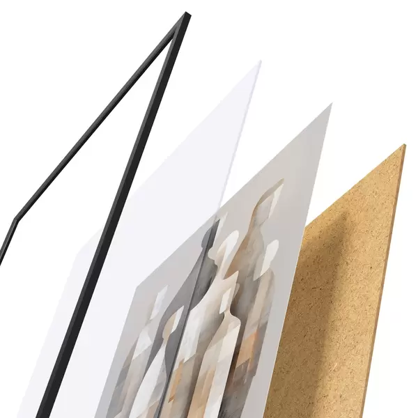 Plakāts sastāv no rāmja, pleksstikla, iespiestā attēla un skaidu plātnes pamatnes. Plakātu var uzreiz piekarināt pie sienas, pateicoties aizmugurē esošajiem stiprinājumiem.