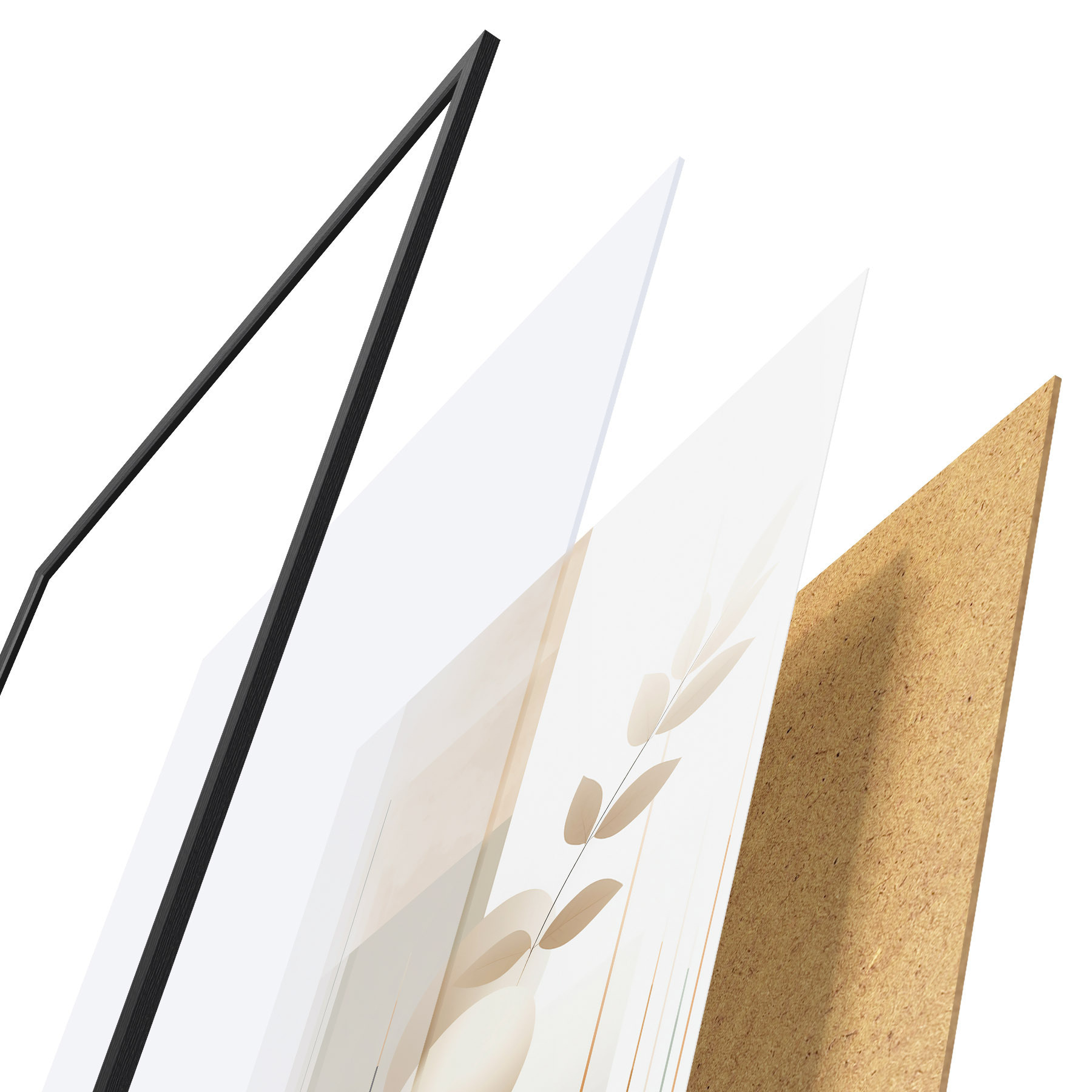 Plakāts sastāv no rāmja, pleksstikla, iespiestā attēla un skaidu plātnes pamatnes. Plakātu var uzreiz piekarināt pie sienas, pateicoties aizmugurē esošajiem stiprinājumiem.