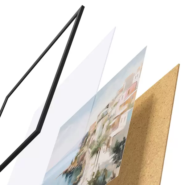 Plakāts sastāv no rāmja, pleksstikla, iespiestā attēla un skaidu plātnes pamatnes. Plakātu var uzreiz piekarināt pie sienas, pateicoties aizmugurē esošajiem stiprinājumiem.
