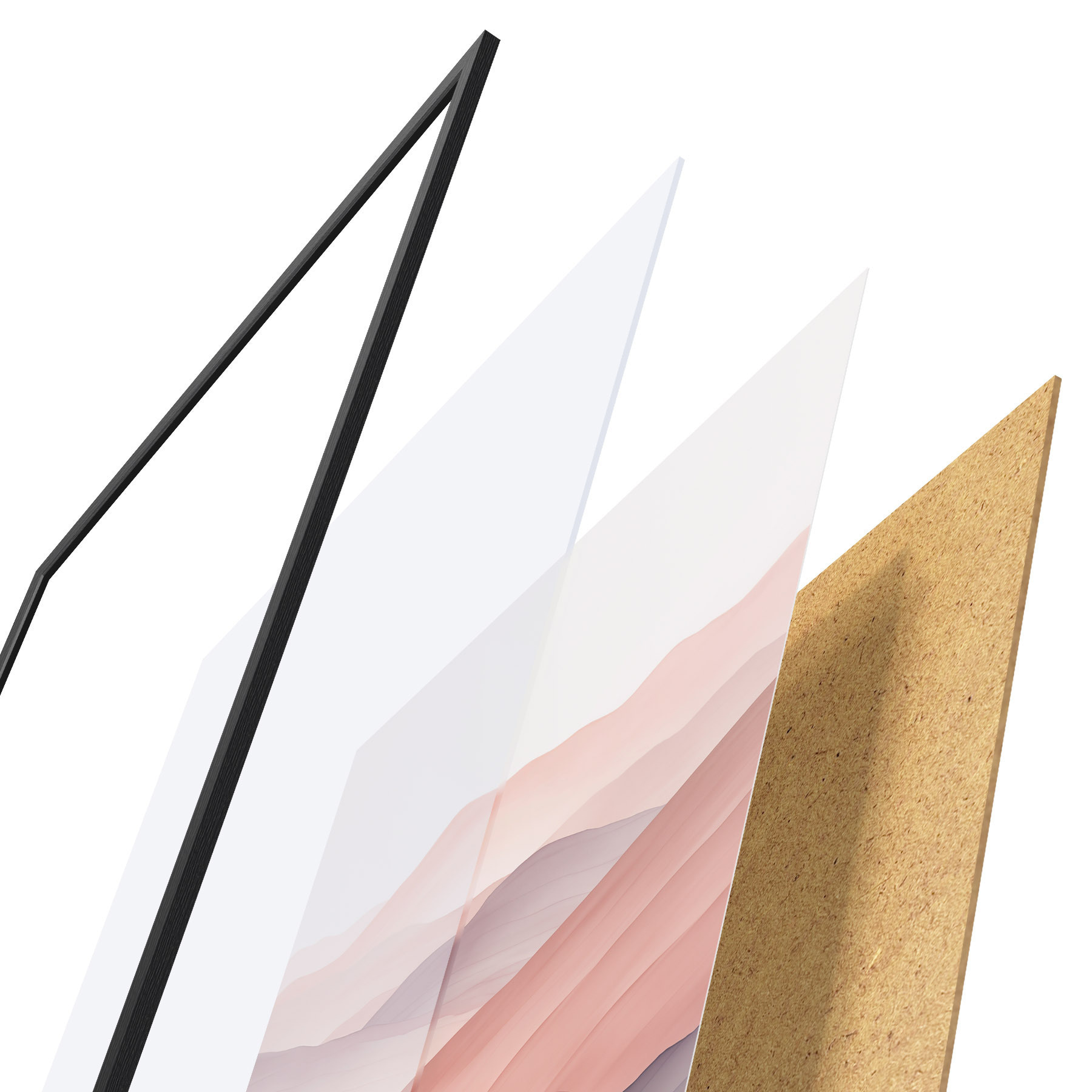 Plakāts sastāv no rāmja, pleksstikla, iespiestā attēla un skaidu plātnes pamatnes. Plakātu var uzreiz piekarināt pie sienas, pateicoties aizmugurē esošajiem stiprinājumiem.