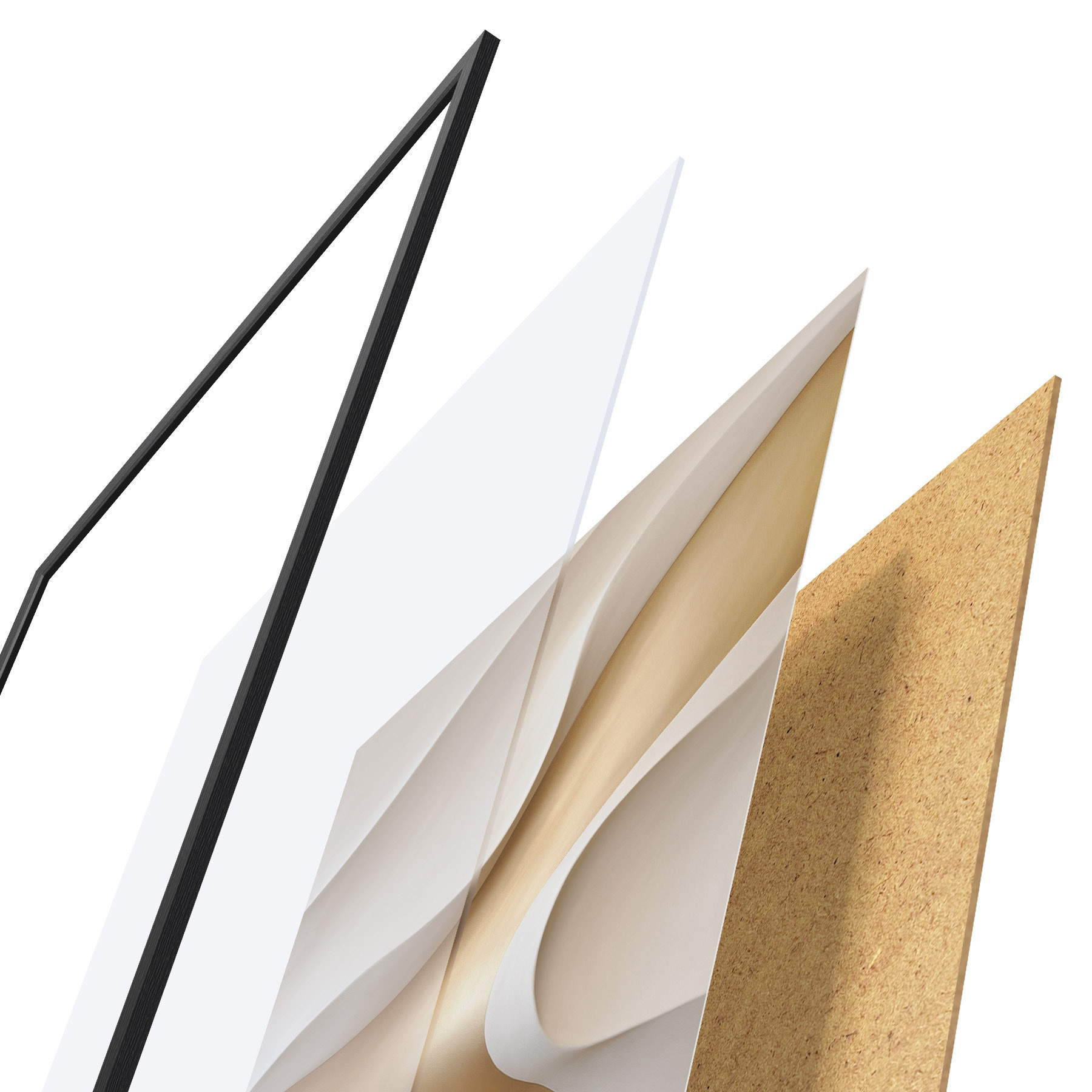 Plakāts sastāv no rāmja, pleksstikla, iespiestā attēla un skaidu plātnes pamatnes. Plakātu var uzreiz piekarināt pie sienas, pateicoties aizmugurē esošajiem stiprinājumiem.