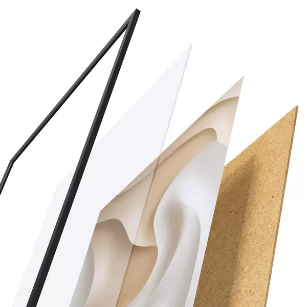 Plakāts sastāv no rāmja, pleksstikla, iespiestā attēla un skaidu plātnes pamatnes. Plakātu var uzreiz piekarināt pie sienas, pateicoties aizmugurē esošajiem stiprinājumiem.