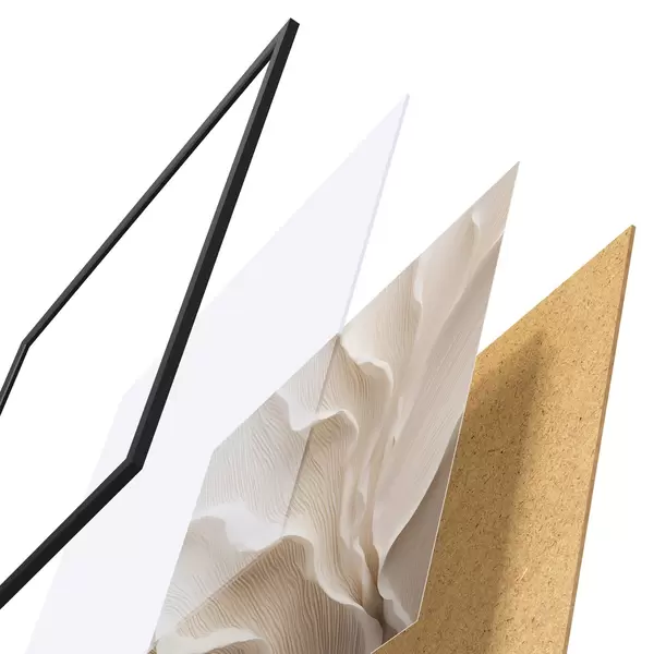 Plakāts sastāv no rāmja, pleksstikla, iespiestā attēla un skaidu plātnes pamatnes. Plakātu var uzreiz piekarināt pie sienas, pateicoties aizmugurē esošajiem stiprinājumiem.