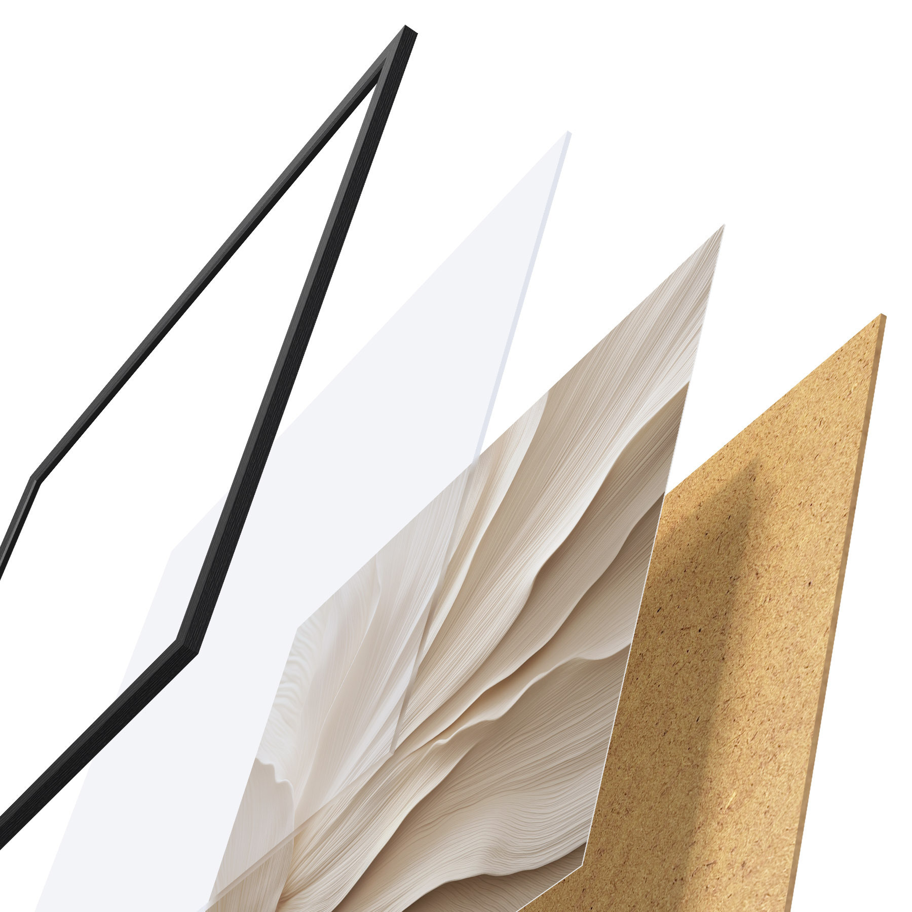 Plakāts sastāv no rāmja, pleksstikla, iespiestā attēla un skaidu plātnes pamatnes. Plakātu var uzreiz piekarināt pie sienas, pateicoties aizmugurē esošajiem stiprinājumiem.