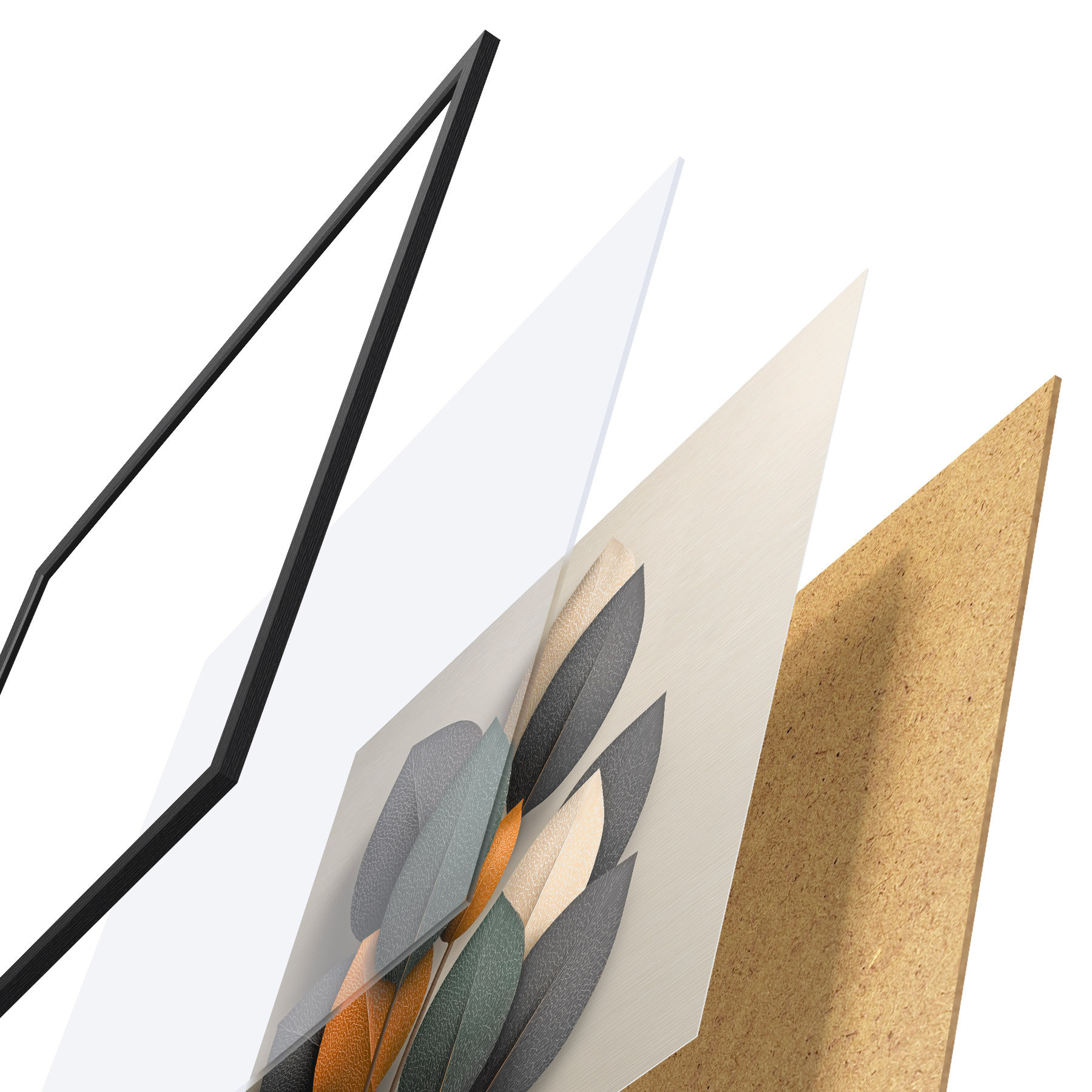 Plakāts sastāv no rāmja, pleksstikla, iespiestā attēla un skaidu plātnes pamatnes. Plakātu var uzreiz piekarināt pie sienas, pateicoties aizmugurē esošajiem stiprinājumiem.
