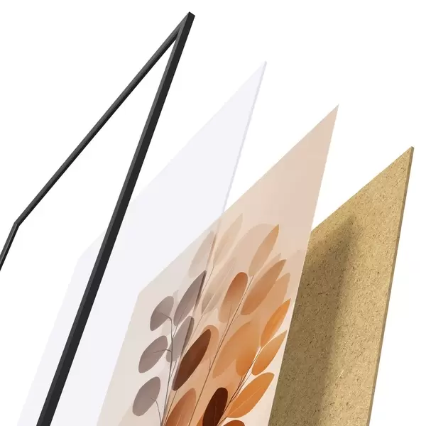 Plakāts sastāv no rāmja, pleksstikla, iespiestā attēla un skaidu plātnes pamatnes. Plakātu var uzreiz piekarināt pie sienas, pateicoties aizmugurē esošajiem stiprinājumiem.