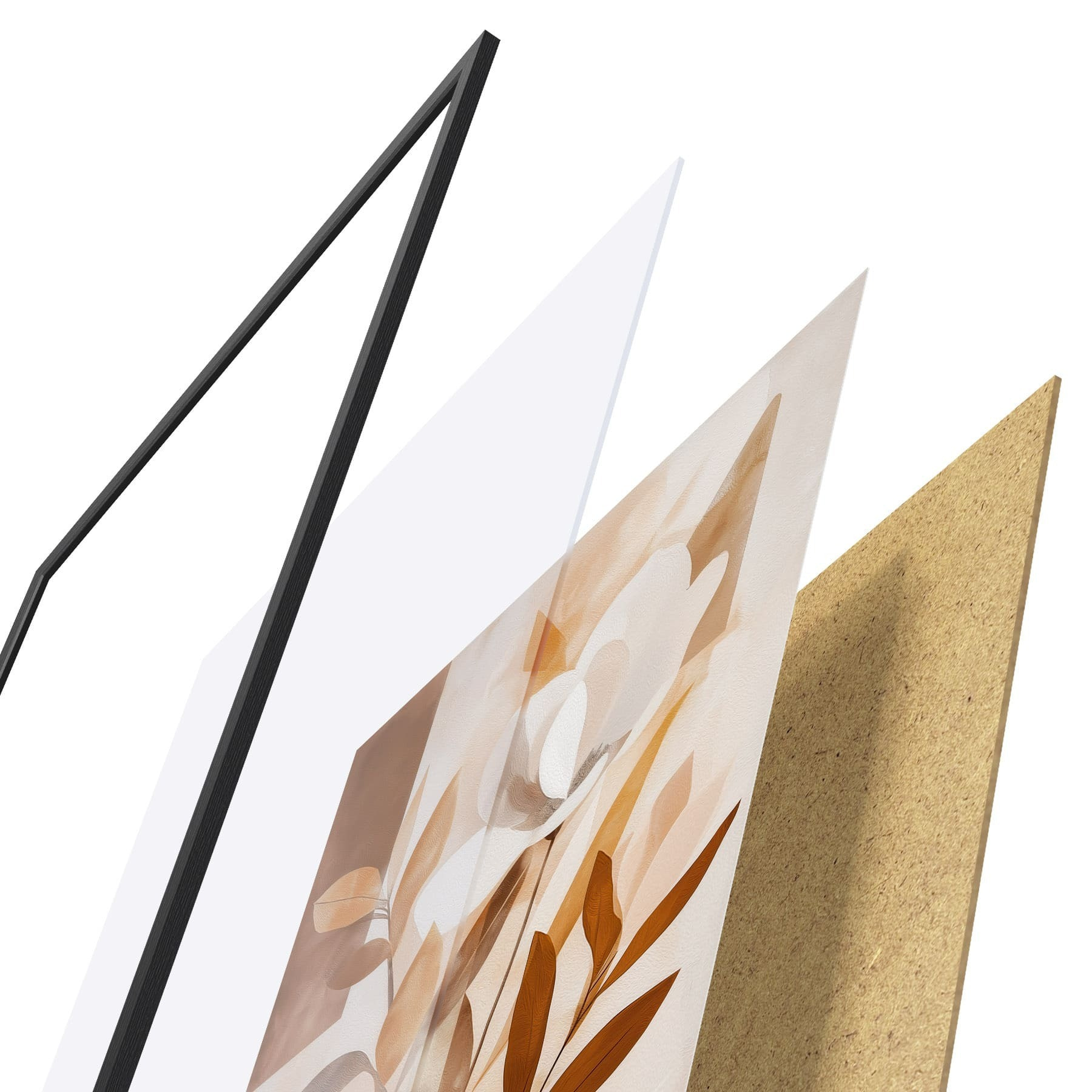 Plakāts sastāv no rāmja, pleksstikla, iespiestā attēla un skaidu plātnes pamatnes. Plakātu var uzreiz piekarināt pie sienas, pateicoties aizmugurē esošajiem stiprinājumiem.