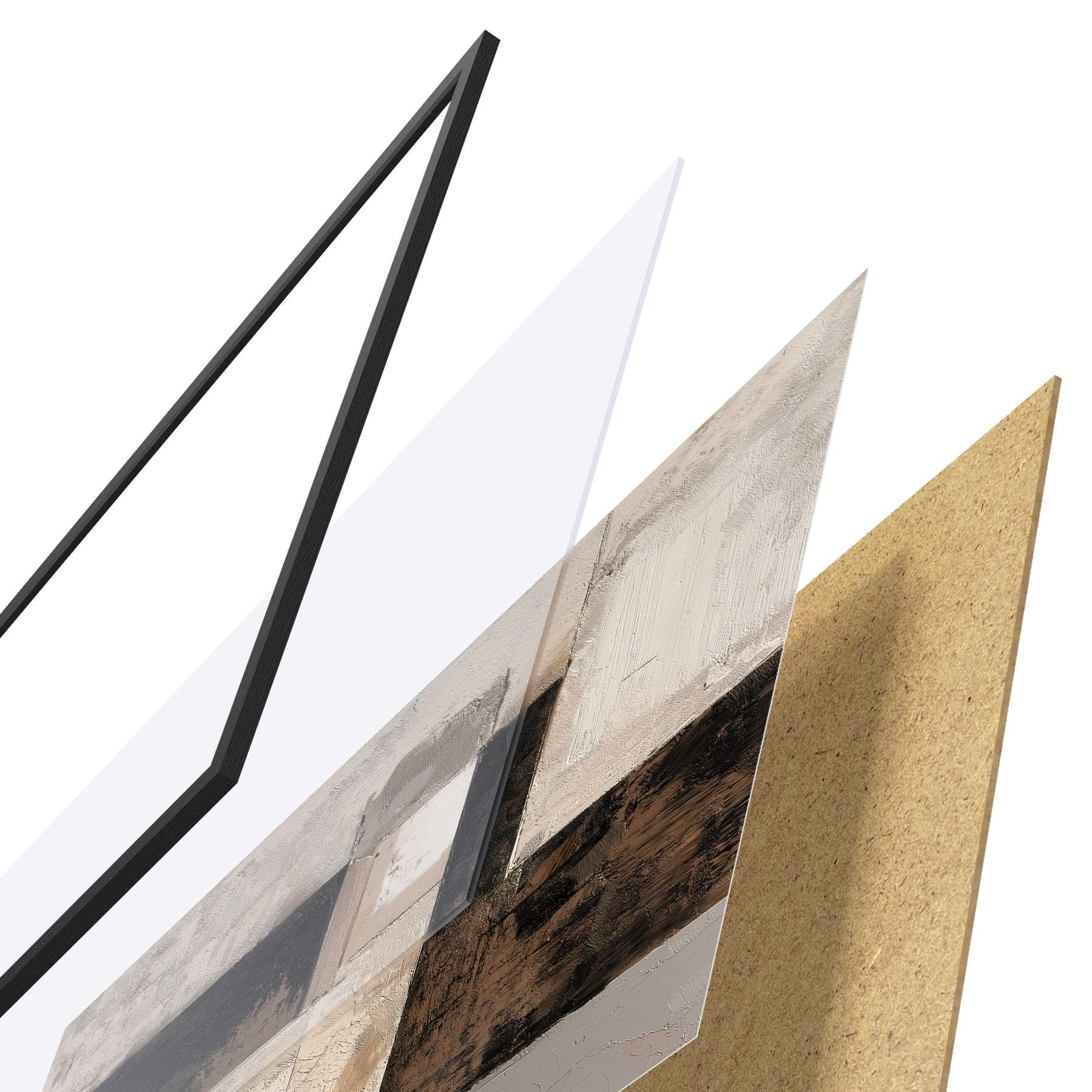 Plakāts sastāv no rāmja, pleksstikla, iespiestā attēla un skaidu plātnes pamatnes. Plakātu var uzreiz piekarināt pie sienas, pateicoties aizmugurē esošajiem stiprinājumiem.