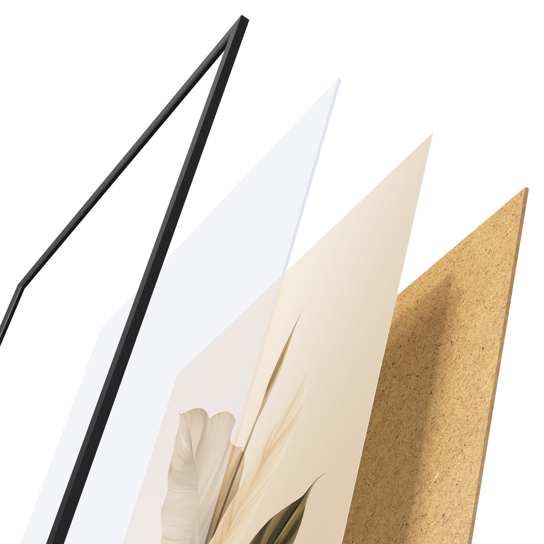 Plakāts sastāv no rāmja, pleksstikla, iespiestā attēla un skaidu plātnes pamatnes. Plakātu var uzreiz piekarināt pie sienas, pateicoties aizmugurē esošajiem stiprinājumiem.