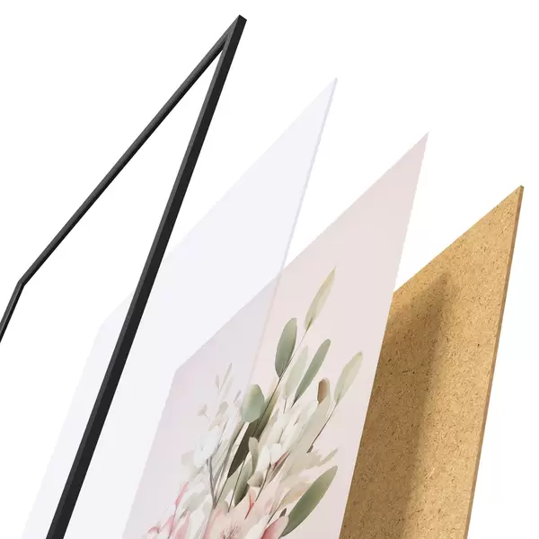Plakāts sastāv no rāmja, pleksstikla, iespiestā attēla un skaidu plātnes pamatnes. Plakātu var uzreiz piekarināt pie sienas, pateicoties aizmugurē esošajiem stiprinājumiem.