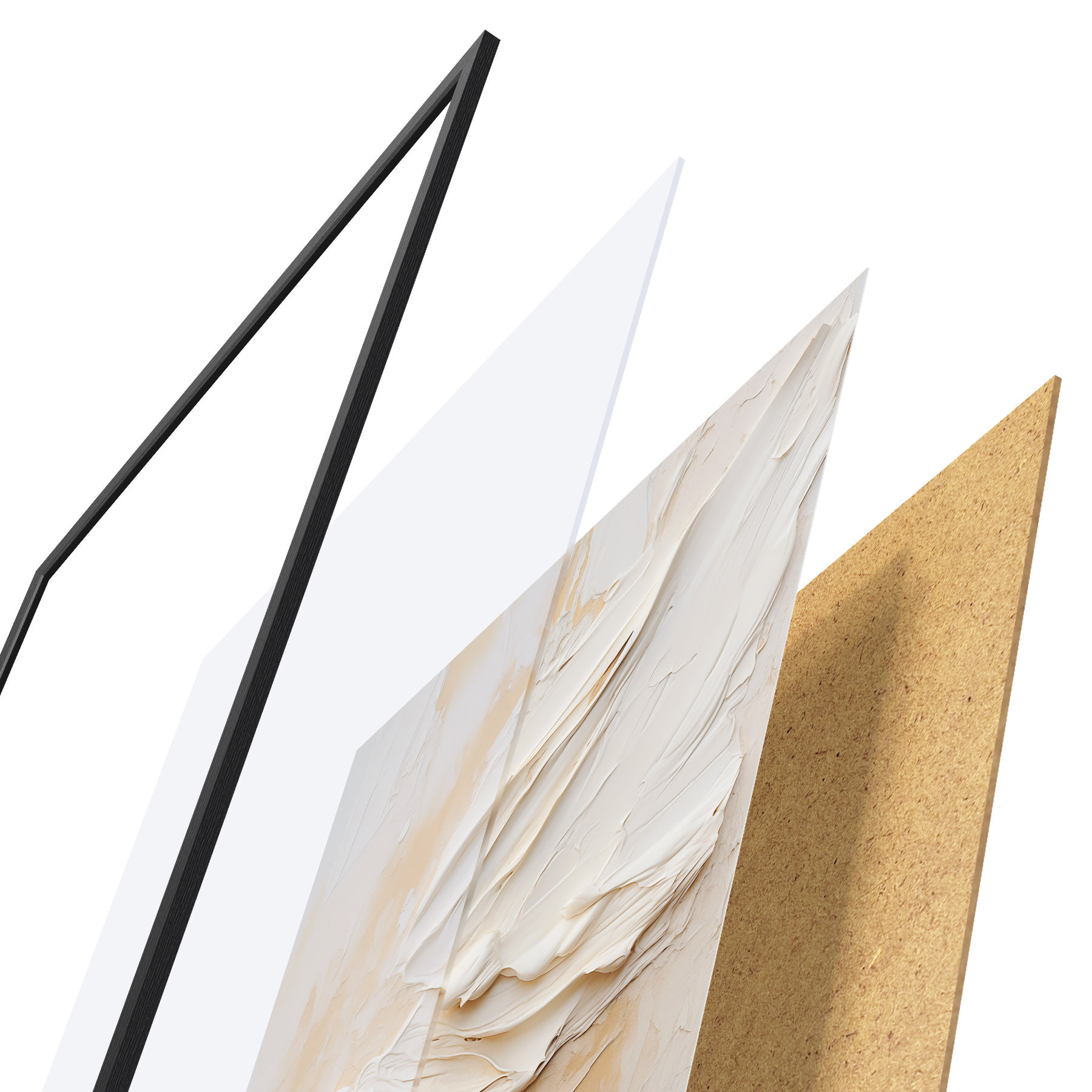 Plakāts sastāv no rāmja, pleksstikla, iespiestā attēla un skaidu plātnes pamatnes. Plakātu var uzreiz piekarināt pie sienas, pateicoties aizmugurē esošajiem stiprinājumiem.