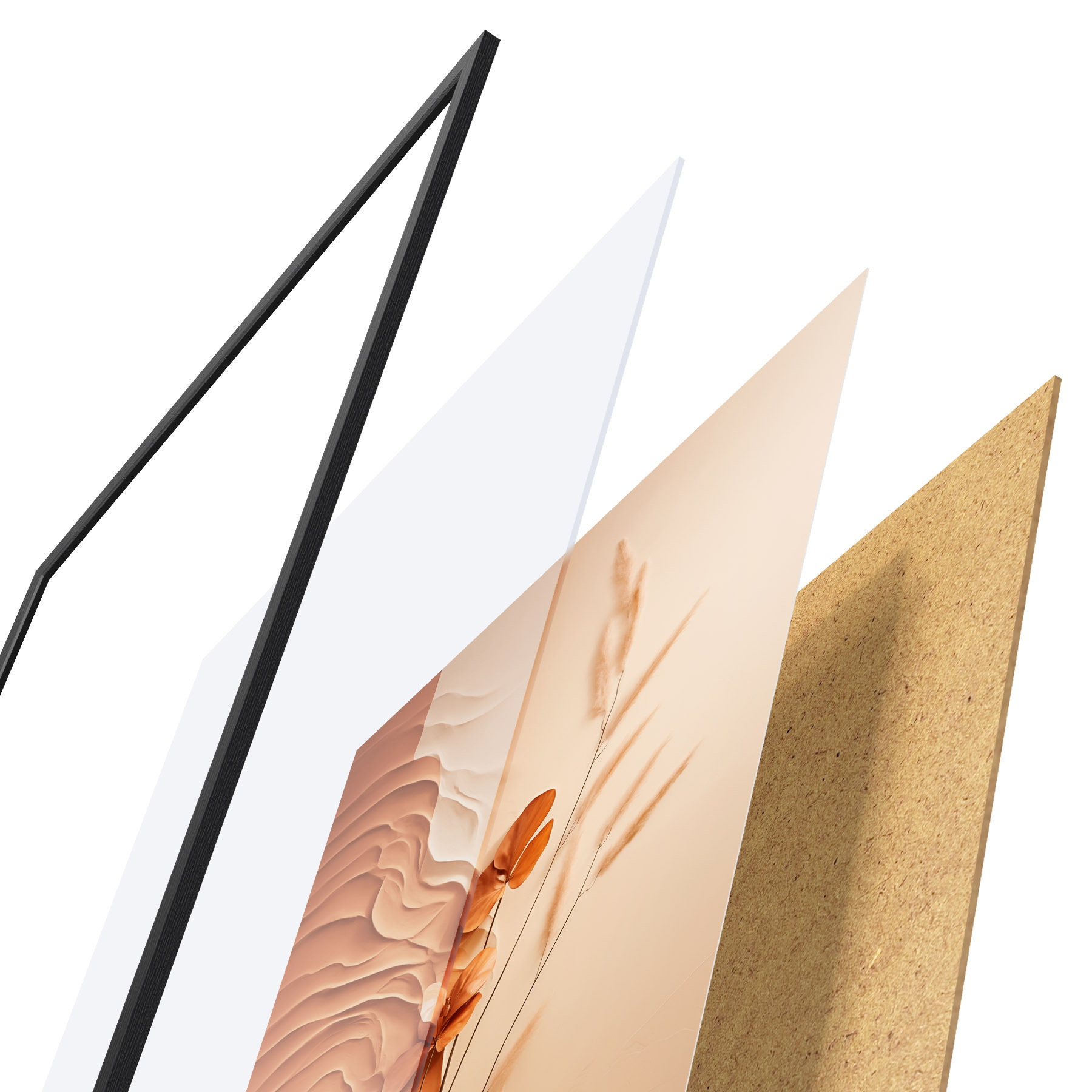 Plakāts sastāv no rāmja, pleksstikla, iespiestā attēla un skaidu plātnes pamatnes. Plakātu var uzreiz piekarināt pie sienas, pateicoties aizmugurē esošajiem stiprinājumiem.