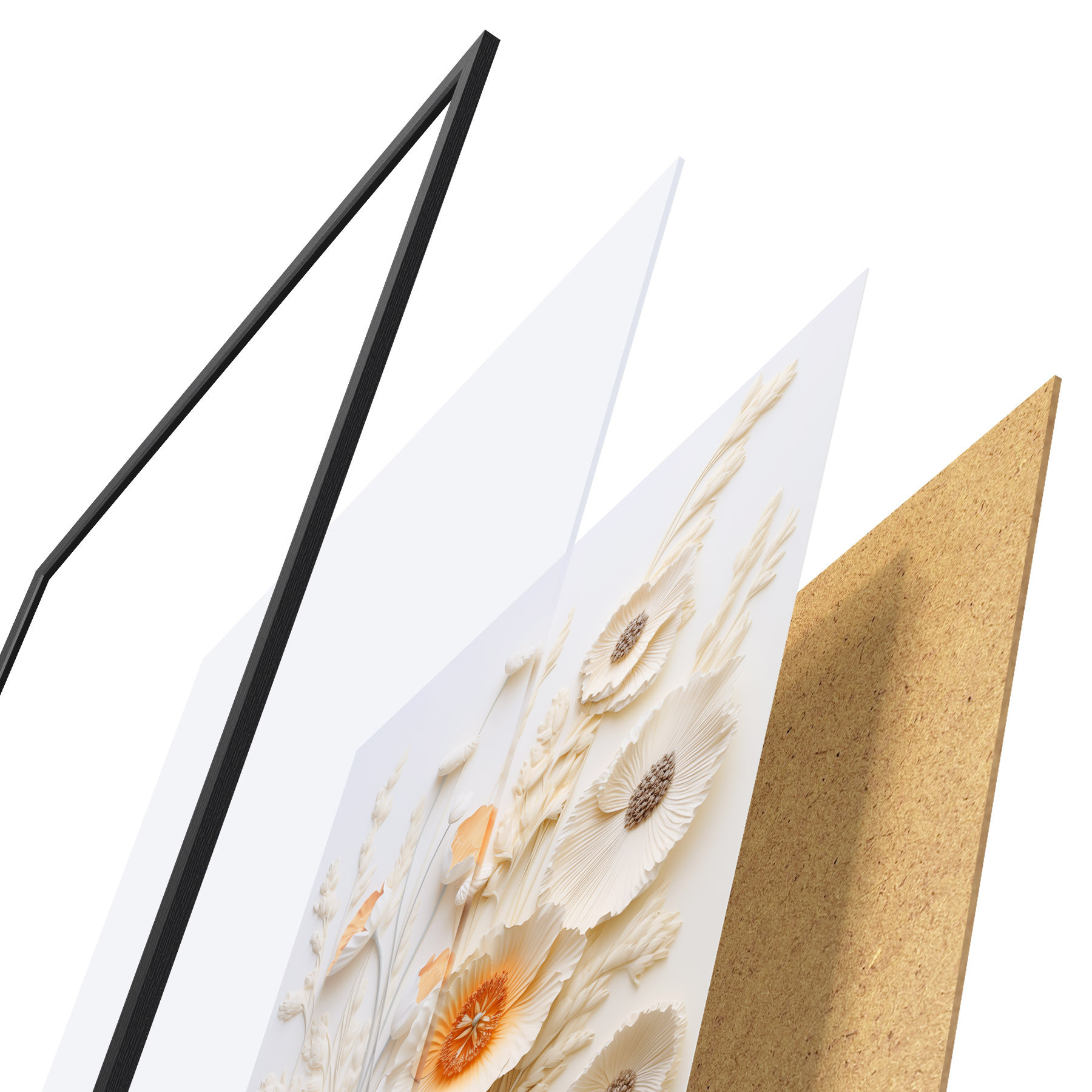 Plakāts sastāv no rāmja, pleksstikla, iespiestā attēla un skaidu plātnes pamatnes. Plakātu var uzreiz piekarināt pie sienas, pateicoties aizmugurē esošajiem stiprinājumiem.