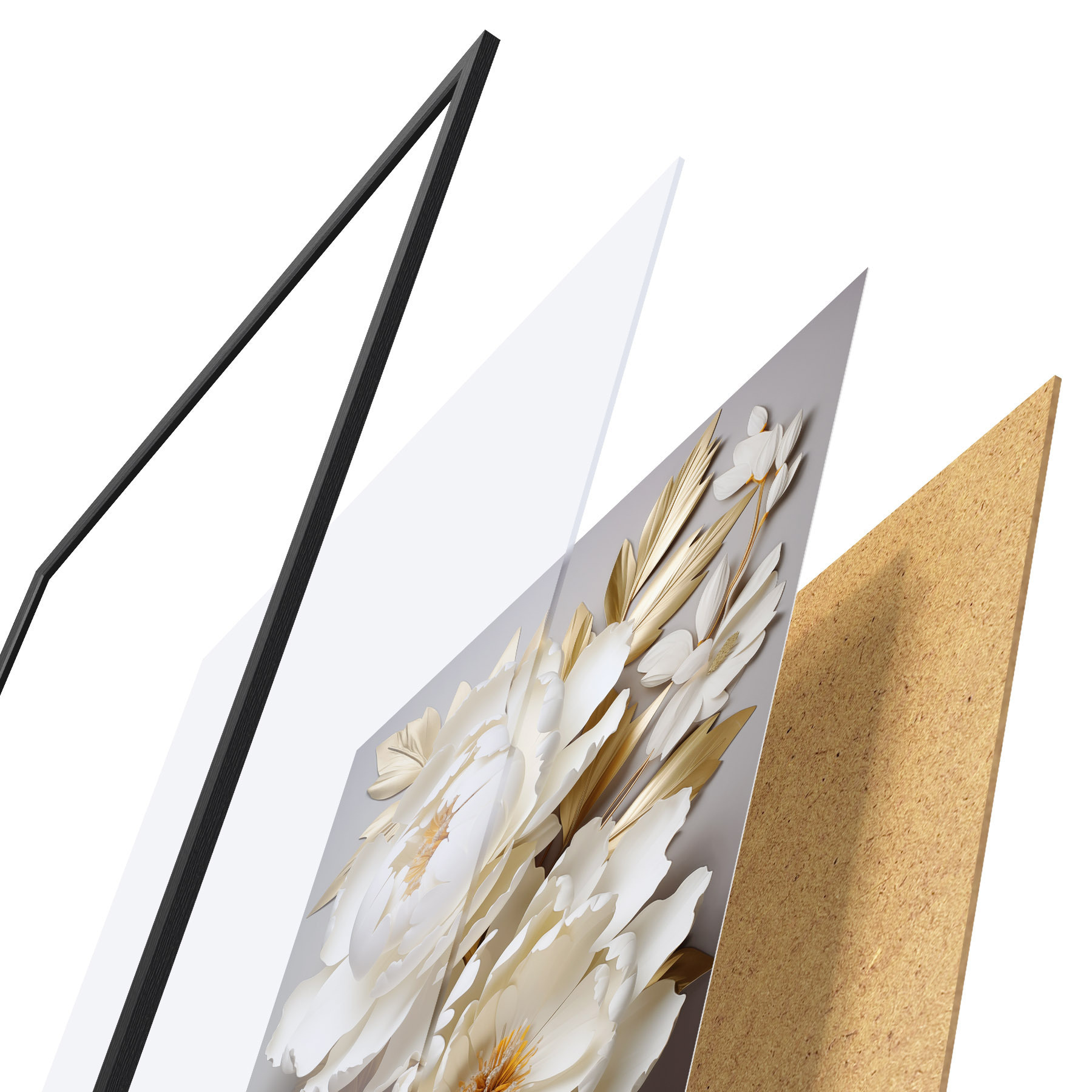 Plakāts sastāv no rāmja, pleksstikla, iespiestā attēla un skaidu plātnes pamatnes. Plakātu var uzreiz piekarināt pie sienas, pateicoties aizmugurē esošajiem stiprinājumiem.