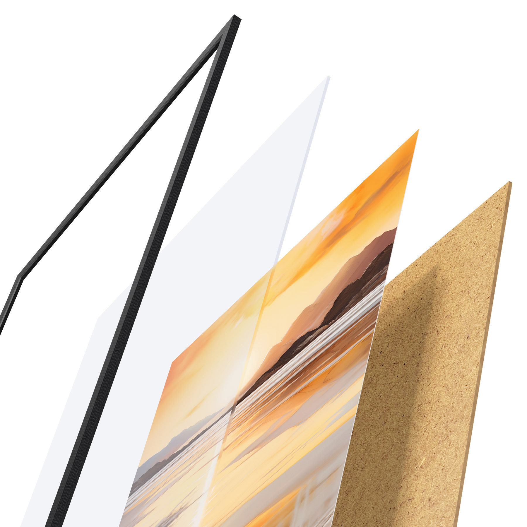Plakāts sastāv no rāmja, pleksstikla, iespiestā attēla un skaidu plātnes pamatnes. Plakātu var uzreiz piekarināt pie sienas, pateicoties aizmugurē esošajiem stiprinājumiem.