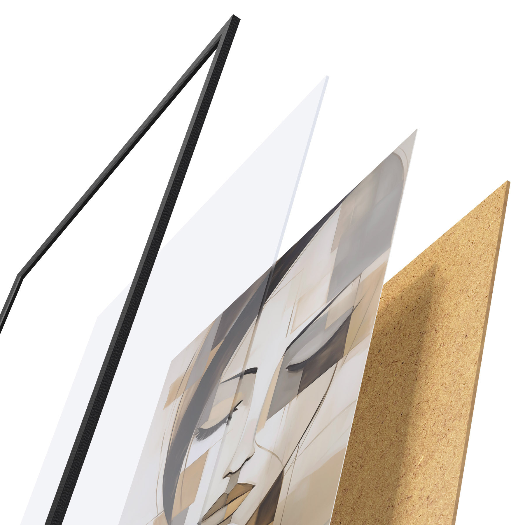 Plakāts sastāv no rāmja, pleksstikla, iespiestā attēla un skaidu plātnes pamatnes. Plakātu var uzreiz piekarināt pie sienas, pateicoties aizmugurē esošajiem stiprinājumiem.