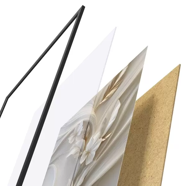Plakāts sastāv no rāmja, pleksstikla, iespiestā attēla un skaidu plātnes pamatnes. Plakātu var uzreiz piekarināt pie sienas, pateicoties aizmugurē esošajiem stiprinājumiem.