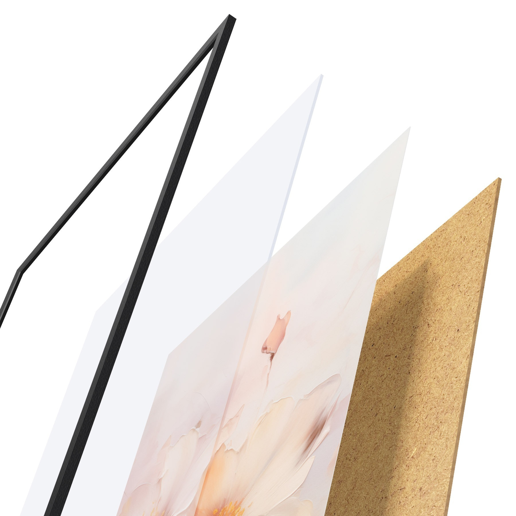 Plakāts sastāv no rāmja, pleksstikla, iespiestā attēla un skaidu plātnes pamatnes. Plakātu var uzreiz piekarināt pie sienas, pateicoties aizmugurē esošajiem stiprinājumiem.