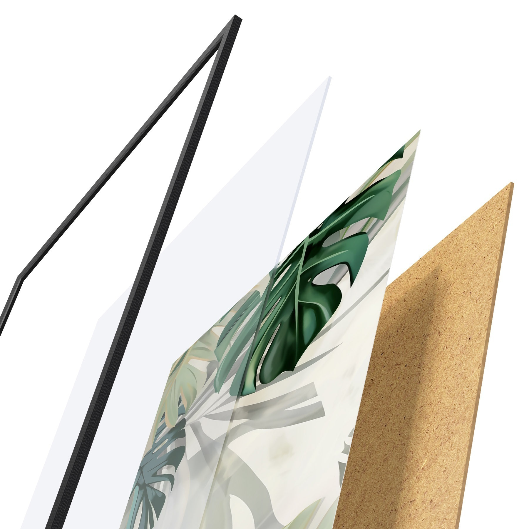 Plakāts sastāv no rāmja, pleksstikla, iespiestā attēla un skaidu plātnes pamatnes. Plakātu var uzreiz piekarināt pie sienas, pateicoties aizmugurē esošajiem stiprinājumiem.